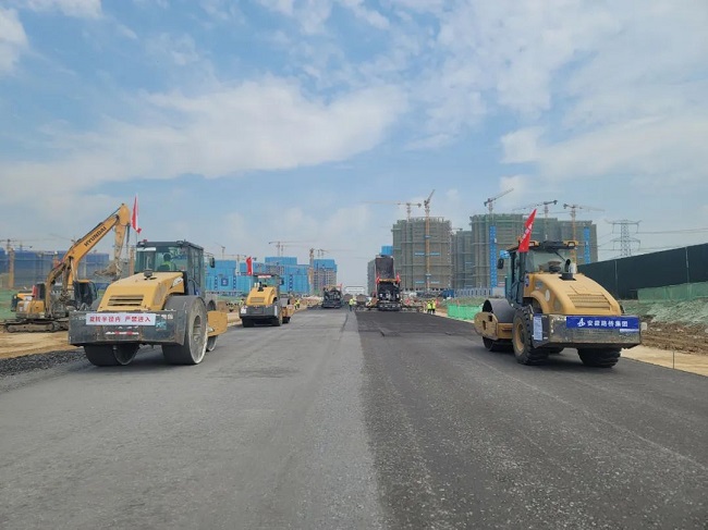 2022年9月26日上午8點,合肥運河新城碩大塘路機動車道水穩底基層試驗段開始攤鋪,標志著整個項目進入道路水泥穩定碎石基層施工階段。