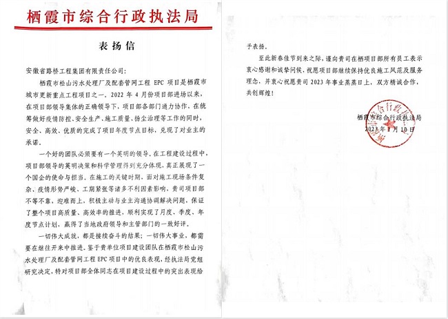 表揚(yáng)信中指出,公司領(lǐng)導(dǎo)的高度重視,精準(zhǔn)指導(dǎo)和項(xiàng)目部團(tuán)隊(duì)通力配合協(xié)作下,項(xiàng)目部克服施工現(xiàn)場(chǎng)條件復(fù)雜、工期緊張、疫情形式嚴(yán)峻等諸多不利因素影響,發(fā)揚(yáng)“高效嚴(yán)謹(jǐn),精細(xì)務(wù)實(shí)”的企業(yè)作風(fēng),攻堅(jiān)克難,全力推動(dòng)工程建設(shè),保質(zhì)保量完成施工任務(wù),贏得了業(yè)主及市委、市政府領(lǐng)導(dǎo)的高度認(rèn)可,對(duì)路橋集團(tuán)在項(xiàng)目建設(shè)中給予的支持表示衷心的感謝。