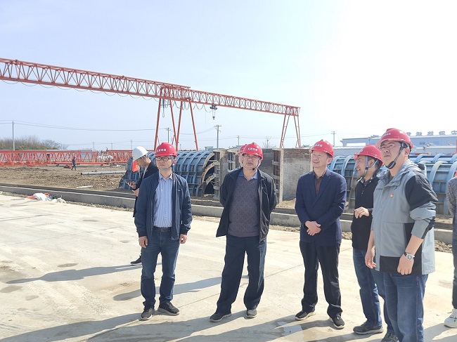 王光銀一行實(shí)地察看了混凝土拌合站、預(yù)制梁場、鋼筋加工配送中心等施工現(xiàn)場。對項(xiàng)目施工進(jìn)度、工程質(zhì)量、安全文明管理進(jìn)行了深入了解,聽取了項(xiàng)目負(fù)責(zé)人對項(xiàng)目建設(shè)前期的準(zhǔn)備工作等方面的匯報(bào)。