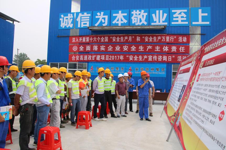 合安高速改擴(kuò)建項(xiàng)目通過安全知識講座、安全宣傳資料發(fā)放、安全宣傳展板展示、安全知識咨詢講解、安全體驗(yàn)區(qū)體驗(yàn)等方式,調(diào)動一線工人對安全生產(chǎn)的關(guān)注。