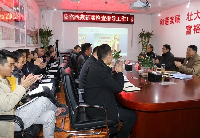 西藏新瑞公司全體人員對集團領導的到來表示熱烈歡迎。西藏新瑞公司總工程師、國道219項目負責人張云甫首先對219項目“工人先鋒號”創建工作從項目簡介、創建準備、組織實施以及創建總結四個方面進行了詳細的匯報;隨后,西藏新瑞公司黨支部書記、總經理王俊文對公司經營、發展情況以及黨支部工作進行了詳細匯報。