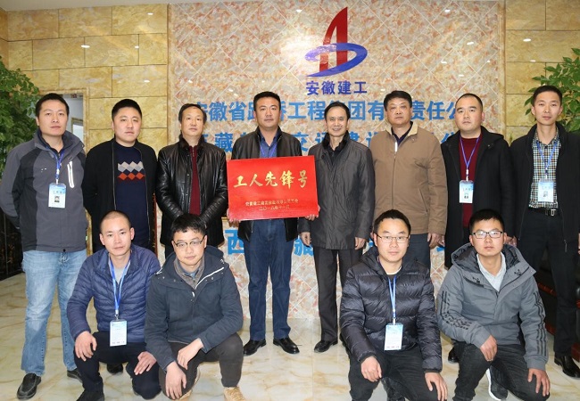 會后,安徽建工集團工會副主席吳曉伍為國道219項目授予“工人先鋒號”榮譽,并與大家進行合影留念,隨后參觀了新瑞公司機關辦公區域。