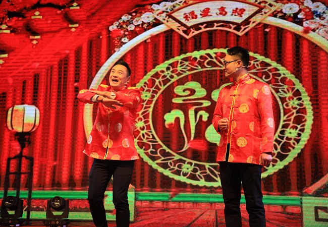 晚會(huì)在酷炫的燈光秀和熱烈振奮的鼓舞中拉開(kāi)帷幕。一段滿懷激情的相聲《勞動(dòng)號(hào)子》道出了建筑工地在黨的富民政策引領(lǐng)和關(guān)懷下的新生活、新局面;極具時(shí)尚、科技感的《活力青春》《光影秀》《魔術(shù)》閃耀登場(chǎng),展現(xiàn)了路橋集團(tuán)新青年的無(wú)限活力和時(shí)尚動(dòng)感;三句半《說(shuō)說(shuō)我們的路橋集團(tuán)》詼諧幽默,引來(lái)陣陣叫好聲;從撰稿到視頻背景再到排練,公司領(lǐng)導(dǎo)親自把關(guān),機(jī)關(guān)部門負(fù)責(zé)人和職工代表合作帶來(lái)的朗誦《筑路人》道出了公司二十五年的風(fēng)雨和成長(zhǎng),道出了奉獻(xiàn)在路橋一線筑路人的辛苦和輝煌,將晚會(huì)氛圍推向高潮;舞蹈《風(fēng)箏誤》舞姿輕盈,溫婉柔情,極具藝術(shù)與觀賞;京韻大鼓《重整河山待后生》、合唱《國(guó)家》、歌伴舞《不忘初心》氣勢(shì)恢宏,正氣凜然,展現(xiàn)出路橋集團(tuán)人的家國(guó)情懷;根據(jù)公司項(xiàng)目實(shí)際改編的情景劇《工地情歌》時(shí)而詼諧幽默時(shí)而感人落淚,引起廣大職工的強(qiáng)烈共鳴;歌舞短劇《藏漢一家親 共筑中國(guó)夢(mèng)》帶來(lái)了西藏新瑞公司的熱情祝福和美好祈愿;最后整場(chǎng)晚會(huì)在《難忘今宵》的優(yōu)美樂(lè)曲中圓滿結(jié)束。