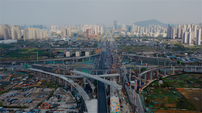 G312合六路(南崗鎮-侯店路)工程項目起于侯店路,終于南崗鎮雙塘路,東西向全長2.54公里,南北向改造長度1.61公里?;ネ⒔粯蚝狭分骶€(左右分幅)及8條互通匝道工期18個月。主要工程有:道路、橋涵、排水、交通、照明等。項目于2022年6月20日開工,截止至目前,整體進度完成約為60%,主線橋梁結構已全線貫通,計劃于5月1日放行通車。G312合六路(南崗鎮-侯店路)工程建成后,將極大的改善現狀道路目前的通行能力和服務水平,加強合肥市主城區與六安城際之間交通的聯系,對改善沿線群眾生活條件、促進區域經濟發展、提升城市品質具有十分重要的意義。