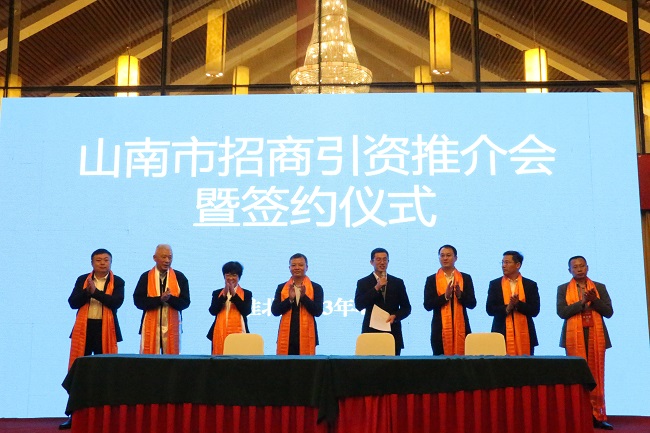 山南市常務副書記、常務副市長、安徽省第八批援藏工作隊領隊單強,山南市委副秘書長、安徽省第八批援藏工作隊臨時黨委副書記孫科,山南市發改委副主任方晨,建設投資集團黨委書記、董事長任杰等領導出席推介會。