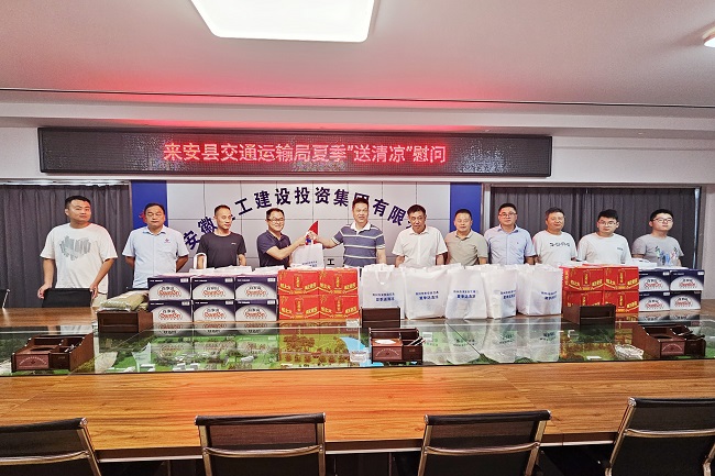 夏日炎炎,驕陽似火。8月5日,來安縣交通運輸局黨組書記、局長徐濤一行赴來六高速04標(biāo)開展“送清涼”慰問,把關(guān)懷送到在烈日下堅守崗位的建設(shè)者手中,為他們送上了綠豆、礦泉水、毛巾、防暑藥等防暑降溫物品。