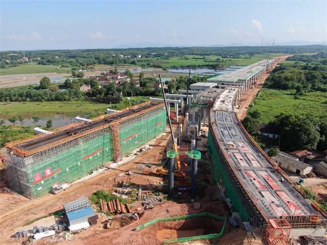 宣涇高速01標段清溪河橋預制梁架設進入尾聲。截止目前,項目部現澆梁共計架設箱梁64片、T梁264片。施工現場正在進行濕接縫、端橫梁鋼筋綁扎、模版安裝等工序,為下一步清溪河橋橋面系施工奠定了基礎。建設者們用熱情汗水戰高溫,用實戰功績斗酷暑,以高度的責任感和使命感確保了項目進度穩步推進。