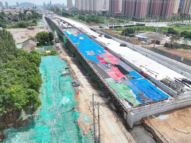 為確保北分溪路上跨橋主體結構封頂順利澆筑,項目部提前謀劃,精心組織,在施工人員、技術、物資設備等方面做足準備,對所有參與澆筑人員進行了詳細的技術交底和安全培訓,確保工程質量和施工安全。現場澆筑時,安排施工人員進行全程旁站監督,嚴格把控原材料質量、鋼筋焊接質量及混凝土澆筑等重要環節,圓滿完成了此次澆筑任務。