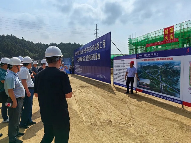 在觀摩會現場,全體參會人員觀看了祁門西互通項目宣傳片,步行查看了施工現場,現場感受項目建設品質工程、平安工地創建等方面工作開展成果,并就項目精細化施工、品質工程創建等方面的主要做法和取得成效進行了深入的溝通交流。