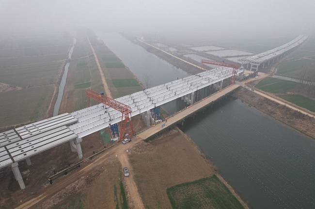 1月31日,建工建投集團(tuán)合周高速潁臨段YL-LJ02標(biāo)項目陶孜河特大橋跨陶孜河段主橋鋼板組合梁架設(shè)完成,標(biāo)志著本標(biāo)段最大最重的鋼板組合梁順利架設(shè)。