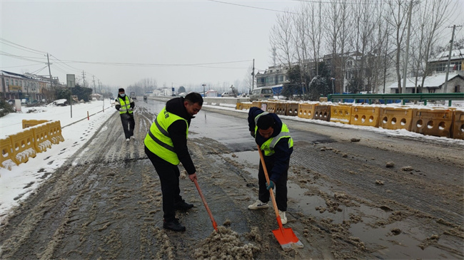 2月1日起,受冷空氣影響,亳州突降暴雪。為避免氣溫低導致道路結冰,G311亳州項目迅速組織項目部全體人員在亳州市譙城區G311古井大道至鹿邑段疏導交通,同時連夜投入5噸融雪劑進行拋撒,并及時對路面積雪進行清除,確保證道路車輛行駛安全。