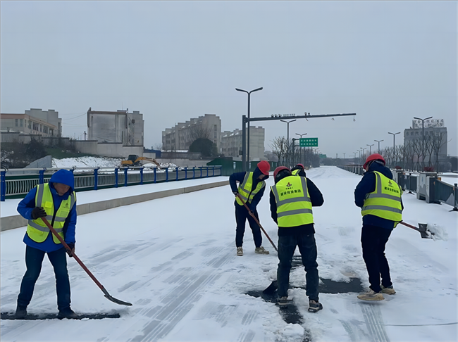 除了安徽省內(nèi),公司所屬山東德州天衢項(xiàng)目也積極發(fā)動(dòng)項(xiàng)目班子及普通員工共15人,使用鐵鍬、掃把、參與駐地及施工現(xiàn)場(chǎng)除雪活動(dòng),保障過(guò)往行人的出行安全。