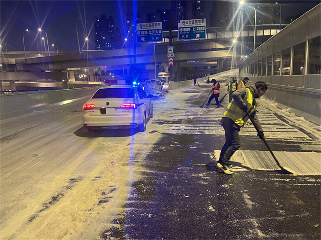 合周高速潁臨段YL-LJ02標(biāo)志愿者們包片行動(dòng),就近上高速,以“機(jī)械為主,人工為輔”的作業(yè)方式與路政、交警等部門(mén)人員協(xié)同作戰(zhàn),積極消除道路安全隱患。同時(shí),在項(xiàng)目駐地使用融雪劑、鐵鍬等工具,對(duì)項(xiàng)目住宿區(qū)、食堂等各區(qū)域屋頂、地面進(jìn)行了全面清掃,為項(xiàng)目員工提供了一個(gè)安全的工作環(huán)境。