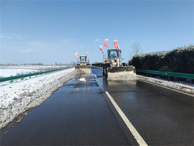 為有效應(yīng)對(duì)冰雪天氣,保障沿線居民交通暢通,廬江二軍路項(xiàng)目人員冒嚴(yán)寒、戰(zhàn)風(fēng)雪,緊鑼密鼓開(kāi)展除雪保暢工作,多措并舉保障公眾出行安全。在除雪保暢工作中,項(xiàng)目人員通過(guò)機(jī)械除雪、撒布融雪劑、加熱路面等,以加速雪層的融化,確保道路暢通。