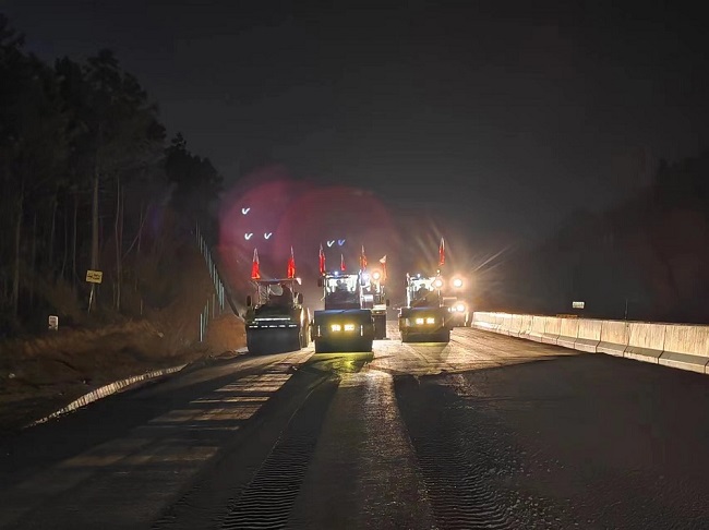 宣涇高速01標項目采取多項措施保進度、重安全、抓生產。按照月計劃、周計劃、日計劃劃分施工管理內容,逐一分解、落實到人。現階段項目部正在進行k6+000-k12+600全幅高壓線外的水穩上基層施工階段性掃尾工作,對k0-k6+000已驗收斷面進行全幅覆蓋施工。在水穩攤鋪現場,項目部組織各班組隊伍、各工區施工員,協調機械設備、物資材料等關鍵生產要素,嚴格工序管控、把關質量生產,晴天大干,風雨小干,夜里白日堅持安全巡查,堅持質量抽查,堅持進度督查,確保水穩攤鋪施工高效有序進行。