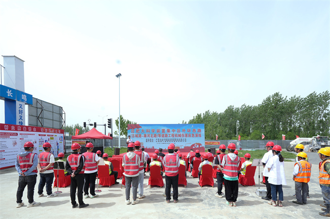 為深入開(kāi)展全國(guó)防災(zāi)減災(zāi)日宣傳教育活動(dòng),提高應(yīng)急能力,5月12日,安建交建公司在合肥市科學(xué)島北路、胡廟路、規(guī)劃支路、先進(jìn)光源連接通道等 4 條道路施工項(xiàng)目開(kāi)展機(jī)械傷害事故應(yīng)急演練活動(dòng)。科學(xué)島北路等4條路項(xiàng)目及外環(huán)西路項(xiàng)目管理人員、隊(duì)伍負(fù)責(zé)人、機(jī)械操作手約50余人參加活動(dòng)。