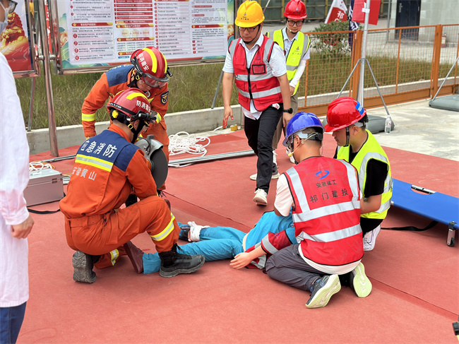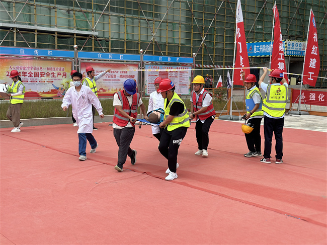 演練現場氣氛緊張而有序,由項目管理人員組成的演練小組迅速進入角色。隨著模擬起重傷害事故的發生,現場管理人員第一時間向應急領導小組總指揮長報告事故,警報聲即刻響起,應急程序隨即啟動,各救援小組聞聲而動。突擊搶險組第一時間沖向現場,停止作業、疏散人員、清理現場障礙物,防止事故擴大化;應急救援組緊隨其后,熟練地采取應急措施,爭分奪秒地營救“受傷人員”;醫療救護組攜帶急救設備,對“傷者”進行緊急救治和初步處理;綜合協調組迅速拉起警戒線,設置警示區,維持現場秩序;通訊聯絡組則保持信息暢通,迅速聯系119、120,及時傳達指令和反饋情況。傷者成功獲救并被及時送往醫院治療,救援任務圓滿完成,應急響應宣布終止。