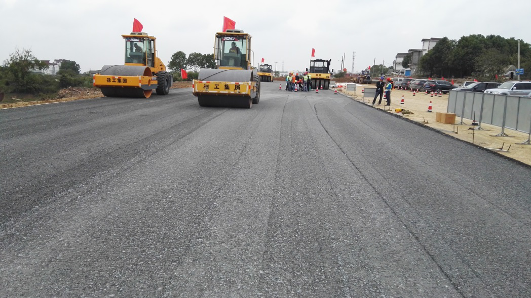(1)主線路面結構:4cm AC-13C細粒式瀝青砼(SBS改性)+粘層+6cm AC-20C中粒式瀝青砼(SBS改性)+粘層+8cm AC-25粗粒式瀝青砼+下封層+36cm水穩+20cm低劑量水穩。
