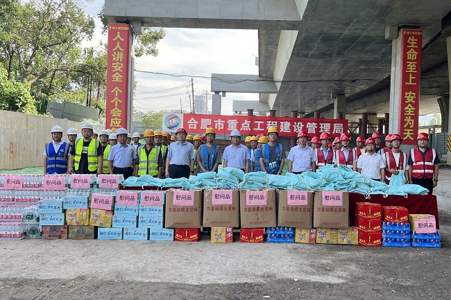 張剛一行詳細了解施工進展情況及項目部防暑降溫舉措,看望并慰問高溫下仍堅守崗位的一線工人,同工人們進行親切交流,送上了人丹、十滴水、洗漱用品及礦泉水等防暑降溫物資,感謝他們?yōu)楹戏蚀蠼ㄔO作出的貢獻,并叮囑工人們要注意自我防護和安全生產(chǎn),做好防暑降溫,做到勞逸結(jié)合,適當休息,以健康、飽滿的狀態(tài)投入到生產(chǎn)中。