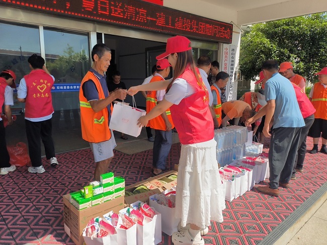 為向辛勤工作的環(huán)衛(wèi)工人傳遞關(guān)懷和感激之情,弘揚(yáng)奉獻(xiàn)、友愛、互助、進(jìn)步的志愿精神。7月19日,潛山G105、S237改建工程項(xiàng)目部聯(lián)合雙峰居委會(huì)黨群服務(wù)中心共同開展“夏日炎炎送清涼 情系一線環(huán)衛(wèi)工”慰問活動(dòng)。