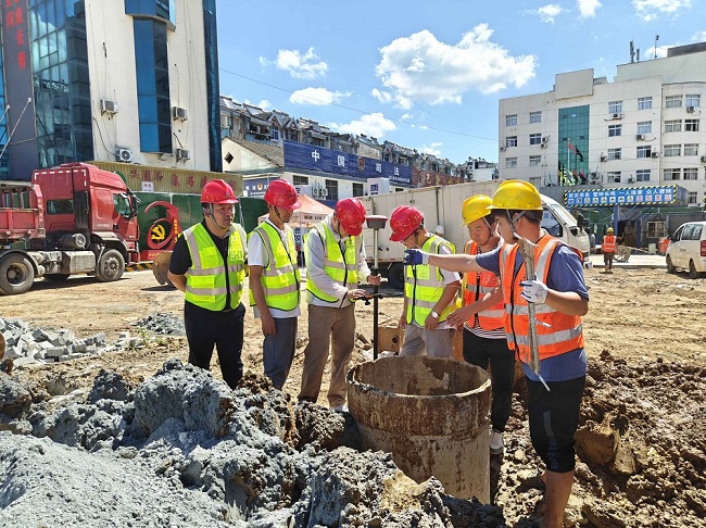 在施工現(xiàn)場(chǎng),機(jī)器轟鳴,施工人員緊張有序地忙碌著。經(jīng)過(guò)精心籌備和嚴(yán)格的技術(shù)操作,首根樁基成功開(kāi)鉆,為后續(xù)的工程建設(shè)奠定了堅(jiān)實(shí)的基礎(chǔ)。為了保障梅城大廈樁基施工的順利推進(jìn),梅城大廈項(xiàng)目部與各參建單位緊密合作,精心組織,科學(xué)管理。在施工前,充分做好了各項(xiàng)準(zhǔn)備工作,包括地質(zhì)勘察、方案設(shè)計(jì)、專家論證、材料準(zhǔn)備等。施工過(guò)程中,嚴(yán)格把控每一個(gè)環(huán)節(jié),加強(qiáng)質(zhì)量監(jiān)督和安全管理,確保樁基施工的高效、優(yōu)質(zhì)、安全。