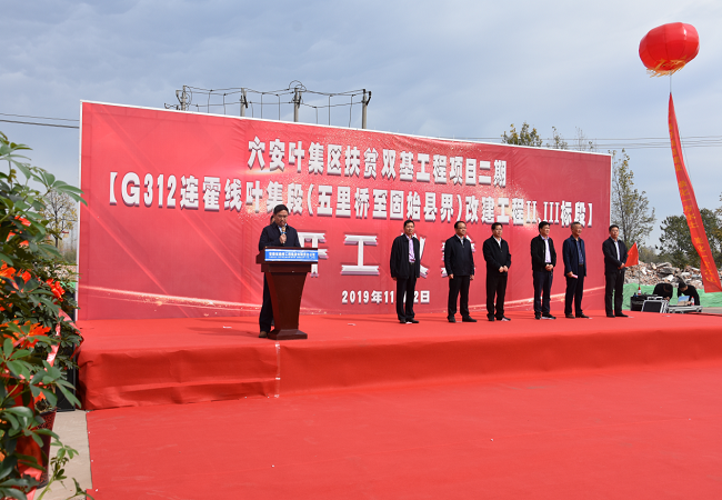 11月12日上午,由安徽路橋集團承建的六安市葉集區扶貧雙基工程二期[G312連霍線葉集段(五里橋至固始縣界)改建工程Ⅱ、Ⅲ標段]開工儀式順利舉行。