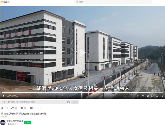 11月28日,黃山新聞網、黃山民生熱線視頻號以《“祁”心協力筑巢引鳳 祁門經開區項目建設多點開花》為題,報道建工建投集團祁門低碳科創園項目即將交付運營。