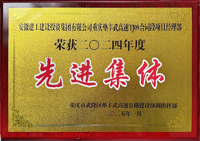 建工建投集團(tuán)重慶墊豐武高速TJ09標(biāo)項目榮獲“2024年度先進(jìn)集體”稱號,陳中文同志榮獲“2024年度先進(jìn)個人”稱號。