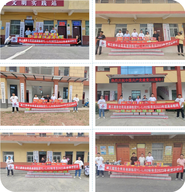 為開展好本次活動,項目部精心組織、統籌謀劃,積極對接田和新村、大新村、鞠郢村、前進村、羅莊村等9個屬地村委會工作人員,并動員項目黨員、團員青年參與活動,為村委會職工送去礦泉水、冰紅茶等累計18000元的防暑降溫物資,并就全線房屋拆遷、征地以及施工過程中如何盡快解決用地交付問題交換了意見并達成一系列共識。
