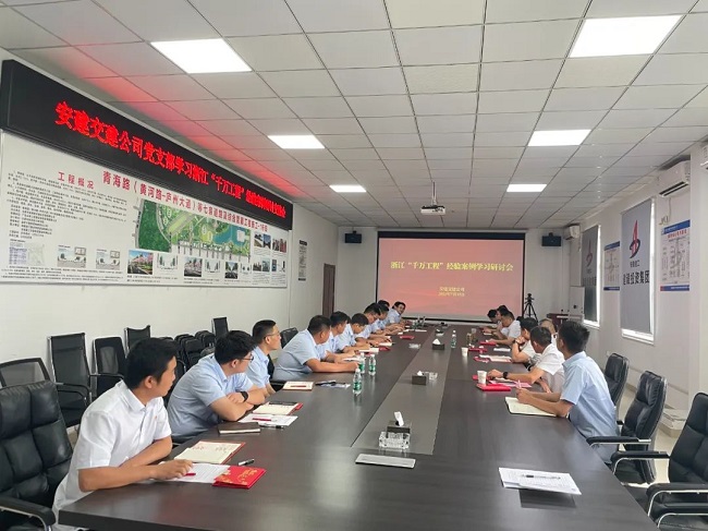 為深入開展學習貫徹習近平新時代中國特色社會主義思想主題教育,進一步鞏固拓展支部黨員學習成果,下午兩點,安建交建公司黨支部在青海路項目部會議室開展浙江“千萬工程”經典案例學習研討活動。