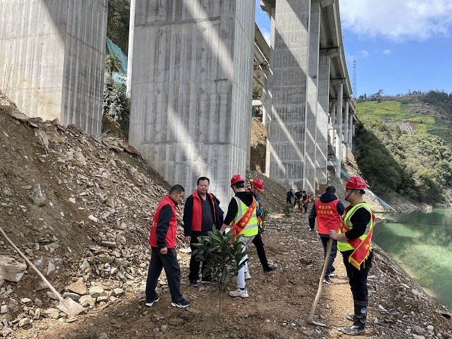 在黃千02標(biāo)項(xiàng)目武陽(yáng)互通橋墩旁,陡峭且修整平齊的邊坡處,眾多志愿者們穿梭其中的身影,他們熱情澎湃、激情昂揚(yáng),在料峭春風(fēng)的相伴下,拿起手中的鏟子挖起一個(gè)個(gè)樹(shù)坑,埋下了一棵棵名為“希望、未來(lái)”的樹(shù)苗,并為樹(shù)苗澆灌春天的甘泉,植樹(shù)志愿活動(dòng)如火如荼的進(jìn)行,志愿者們不怕累不怕臟,兩邊昂揚(yáng)的樹(shù)苗見(jiàn)證了他們辛勞汗水的拋灑,只為實(shí)現(xiàn)路橋集團(tuán)人心中最初的承諾“來(lái)時(shí)綠水青山,走時(shí)青山綠水”!