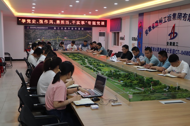 為全面落實集團和公司黨史學習教育、新一輪深化“三個以案”警示教育部署要求。6月8日,二分公司黨總支書記劉峰在滁天高速04標上“學黨史 強作風 勇擔當 干實事”專題黨課。二分公司機關黨支部部分黨員、滁天高速項目黨支部全體黨員、入黨積極分子等參加學習。