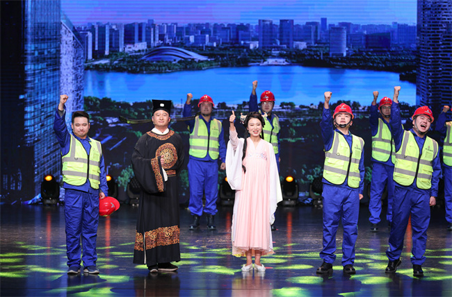 伴隨著動(dòng)感活力的開場(chǎng)舞《愛在建投 逐夢(mèng)飛翔》,演出大幕正式拉開。群口相聲《說說咱們的心里話》,觀眾在捧腹中品味建設(shè)者的辛勤付出;快板《奮發(fā)向上建工人》,精神飽滿、聲音高亢,令人振奮;情景劇《搬遷》,展現(xiàn)建工建投人積極響應(yīng)號(hào)召,背井離鄉(xiāng)、拼搏奮斗,動(dòng)人故事引發(fā)廣大職工共鳴;手影舞《30年征程鑄輝煌》細(xì)數(shù)企業(yè)三十載春華秋實(shí),形式新穎、創(chuàng)意十足;情景舞劇《路》取材G347PPP項(xiàng)目建設(shè)故事,大氣恢弘,將全場(chǎng)氣氛推向小高潮;展現(xiàn)建工建投人家國(guó)情懷的情景朗誦《新時(shí)代最可愛的人》、舞蹈《征途》、戲曲《徽風(fēng)皖韻 大地流彩》、民樂合奏《天地龍鱗》,從青春活力演繹到文化傳承,舞姿婀娜、鼓樂相迎,均極具藝術(shù)與觀賞性,使人連連叫好;以真實(shí)事件為藍(lán)本的小品《路漫漫》,以詼諧幽默的形式道盡企業(yè)債權(quán)催收小組工作中遇到的酸甜苦辣;穿越情景劇《包公回家》別具心裁,呈現(xiàn)包公大道項(xiàng)目道路建設(shè)給地方百姓生活帶來的翻天覆地變化;舞蹈《西藏人民齊歡喜》,帶來了西藏新瑞公司的熱情祝福和美好祈愿;歌伴舞《就是現(xiàn)在》,以歌織夢(mèng),聲入人心,激發(fā)奮進(jìn)力量。