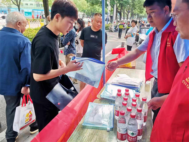 考點外,三分公司機關黨支部為考生及家長們準備了充足的瓶裝水、扇子、考試工具等用品,同時還配備了防暑降溫藥品等應急物資,全力以赴助力高考。