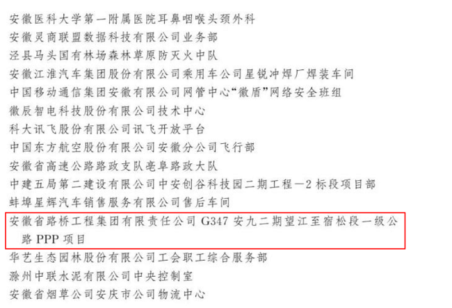 4月27日,2023年慶祝“五一”國際勞動節(jié)暨全國五一勞動獎和全國工人先鋒號表彰大會在北京人民大會堂舉行。207個集體和1035名個人分獲全國五一勞動獎狀、獎?wù)拢?044個集體獲全國工人先鋒號。由安徽建工建設(shè)投資集團承建的G347安九二期PPP項目被中華全國總工會授予“全國工人先鋒號”榮譽稱號。