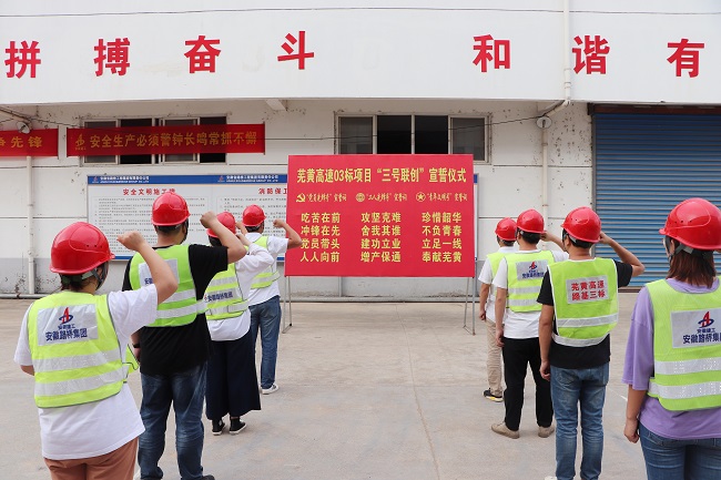 6月2日,蕪黃高速03標召開“三號聯創”動員會。公司黨委委員、紀委書記王勝利、公司工會副主席陸在銀出席會議并講話。二分公司黨總支書記劉峰主持會議。
