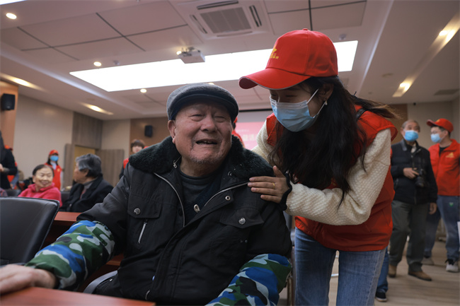 97歲的黃奶奶緊緊拉住志愿者的手,說道:“敬老院的食宿很好,謝謝你們的關心,歡迎你們經常來陪我們聊聊天。”幸福的笑容洋溢在老人們的臉上,現場其樂融融。
