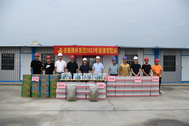 8月11日,公司黨委書記、董事長任杰,黨委委員、副總經理、總工程師陳莘,黨委委員、副總經理江仲明,工會主席邵康一行蒞臨黃千高速02標項目開展送清涼慰問活動。