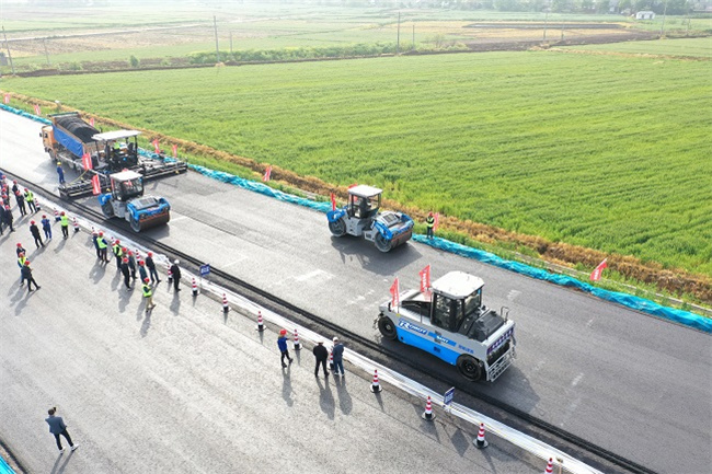 4月16日上午,望江G347安九二期PPP項目施工現場,高等級攤鋪機、膠輪壓路機、雙鋼輪壓路機等機械設備整裝待發,一場別開生面的路面攤鋪無人智能化操作即將開始。這是公司積極創新發展模式,致力于打造數字化、精細化、智能化的“智慧工地”剪影。