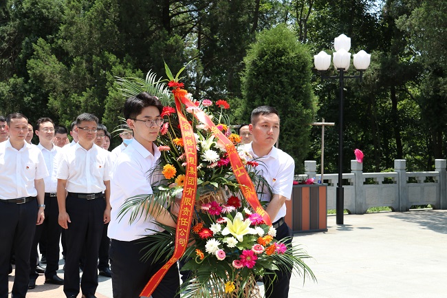 紅軍廣場前,在公司領導班子的帶領下,黨員同志們拾級而上,步行至革命烈士紀念塔正前方肅立,向革命烈士紀念塔敬獻花籃。全體同志深深三鞠躬,表達對革命烈士的深切緬懷和無限敬仰。