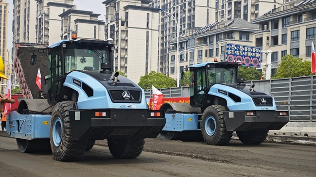 2025年5月24日,建工建投集團設備安裝公司在龍城路(金陽路-臨河東路)維修改造工程項目應用無人攤壓技術完成下基層水穩攤壓作業,為安徽省首次將無人攤壓技術應用于路面基層施工。