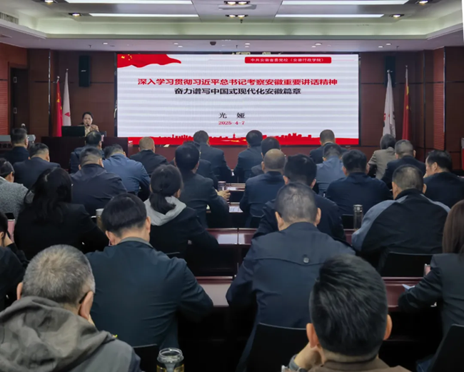 4月7日下午,公司黨委召開理論學習中心組2025年第4次(擴大)學習會,特邀省委黨校(安徽行政學院)統一戰線教研部副主任、教授光婭,圍繞學習貫徹習近平總書記考察安徽重要講話精神作專題輔導。公司黨委書記、董事長任杰主持會議并講話。