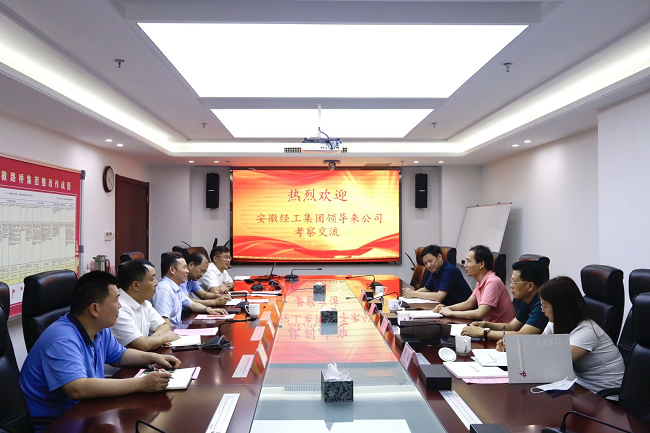 7月14日下午,安徽經工集團黨委書記、董事長王傳寶帶隊來公司考察交流,公司黨委書記、董事長盛明宏接待了王傳寶一行,并于公司會議室召開座談會。