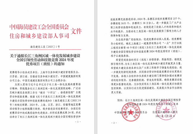 2024年,為深入貫徹習近平總書記關于長三角一體化發展的重要指示精神,積極服務長江三角洲區域一體化發展國家戰略,上海、江蘇、浙江、安徽等省市廣泛動員城鄉建設系統職工參與“建功‘十四五’、奮進新征程”主題勞動和技能競賽,共計257個參賽項目參加競賽,并從中評選出40個優秀項目(班組)予以通報表揚。