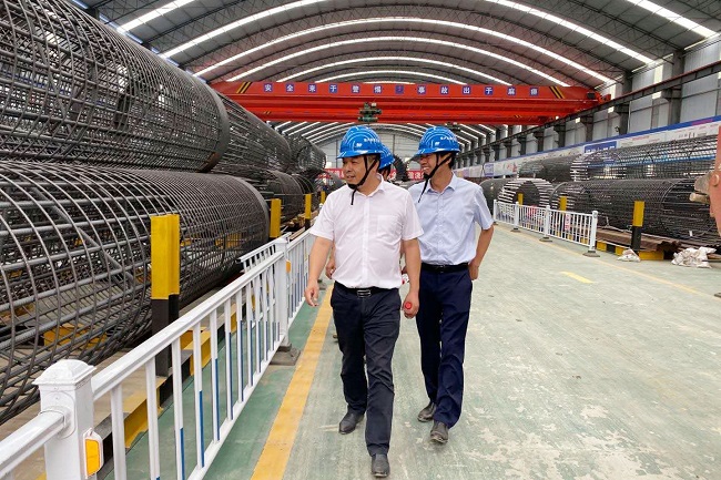 江仲明一行實地查看了項目的標準化場站建設和一線施工現場進展情況,認真聽取了項目負責人關于項目節點工程、重難點工程等方面的匯報。