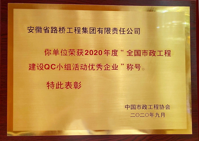 中國市政工程協會“2020年度市政工程建設優秀QC小組活動成果發布會”近期分別在杭州、合肥兩地召開,公司選送的3項QC成果取得優異成績,公司也再次榮獲“全國市政工程建設QC小組活動優秀企業”稱號。