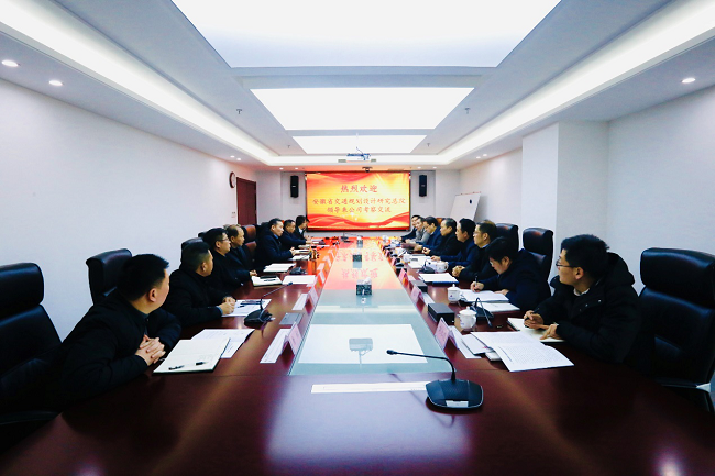 1月7日下午,安徽省交通規劃設計研究總院黨委書記蘇新國來公司考察交流,公司黨委書記、董事長盛明宏接待了蘇新國一行,并于公司9樓會議室進行座談。