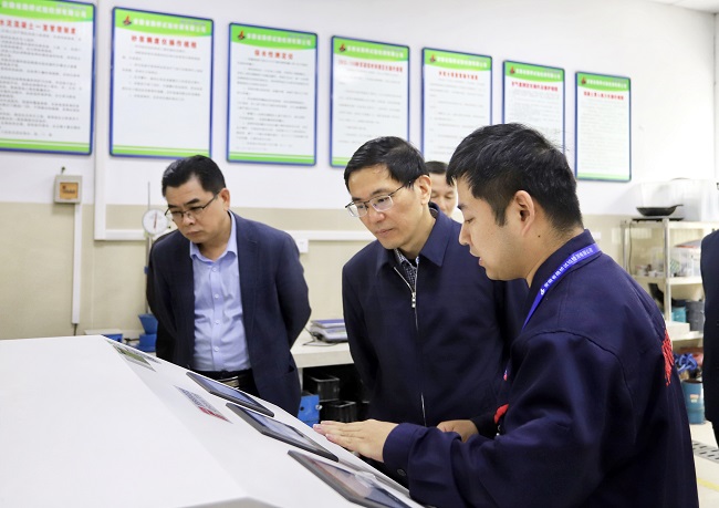 沈群一行現(xiàn)場查看檢測公司功能室、檢測車庫,全面考察了公司檢測環(huán)境和設(shè)施設(shè)備,了解檢測業(yè)務(wù)開展情況。隨后進行了座談,聽取了路橋集團和集團檢測公司有關(guān)情況的介紹,就省內(nèi)交通試驗檢測行業(yè)發(fā)展和管理進行了交流。