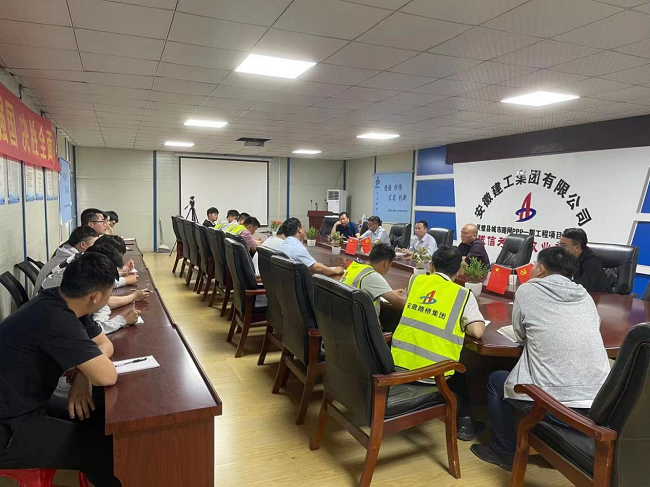 盛明宏一行深入鳳山大道、迎賓大道、奇石大道的施工現場,了解當前的工程進展及存在困難,隨后在項目會議室召開座談會,與項目員工進行座談交流。