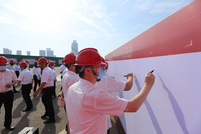啟動儀式上,公司黨委書記、董事長盛明宏宣布安徽路橋集團2021年“安全生產(chǎn)月”正式開始。黨委副書記、總經(jīng)理歐陽志宜發(fā)表動員致辭。與會全體人員莊嚴(yán)宣誓,并鄭重在安全月展板上簽名,用承諾開啟公司2021“安全生產(chǎn)月”活動。“安全生產(chǎn)月”啟動儀式結(jié)束后,與會全體人員在花園大道項目施工現(xiàn)場進行觀摩學(xué)習(xí)。